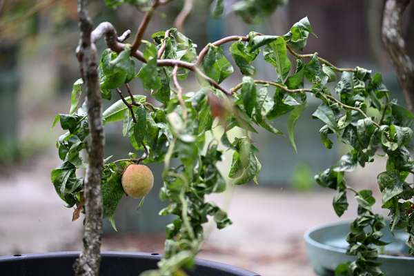 写真は雲竜源平しだれ桃、記念樹10年たってから初めて実がなった。
